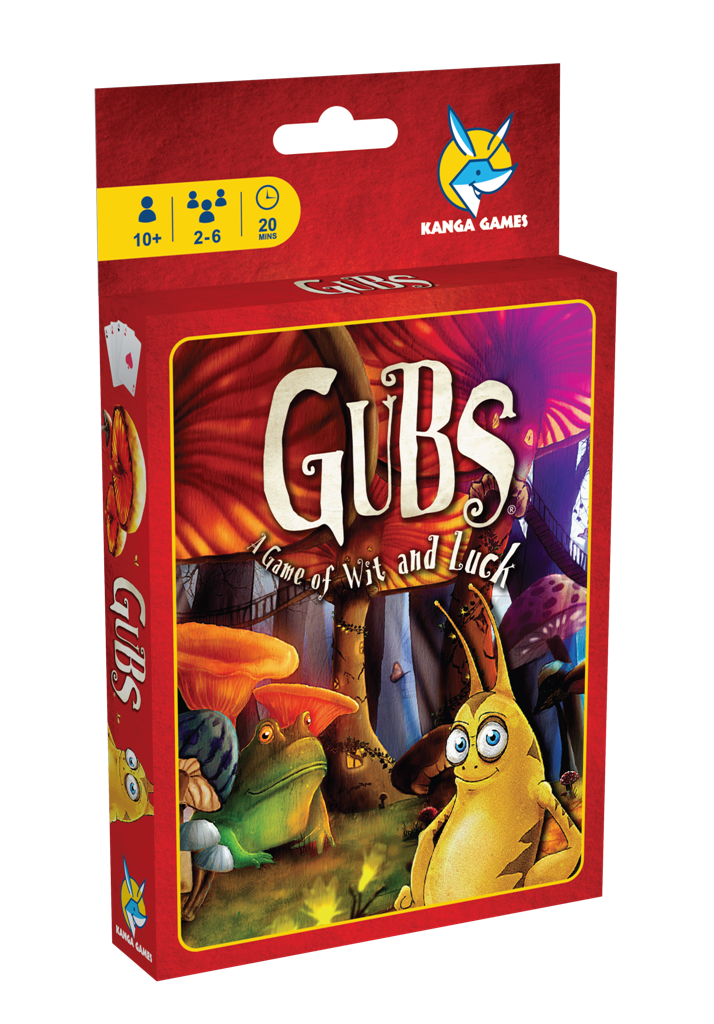 GUBS: A Game of Wit and Luck invites you to partake in the secret struggle of the Gubs. Each player competes to build the largest, strongest colony by the time the three dreaded Letter Cards emerge from the deck and end the game. Their world is a place filled with danger; from giant Omen Beetles who consume the delicate Gub Cities to Flash Floods to deadly Wasps, your gubs hardly stand a chance on their own... but arm them with Spears, let ride the valiant Toad Riders, build Mushroom Barricades and lead your colony through the forest underbrush and to victory.