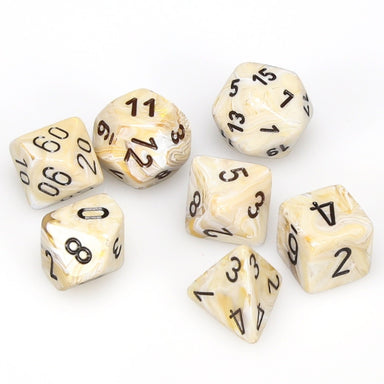 CHX27402 Marble Polyhedral Ivory w/Black 7-Die Set Chessex