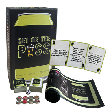 Get on the Piss is a drinking game for every man shed and wild night in! With two ways to play you can spice up any night and quench the thirst for...
