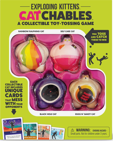 Catchables names both a set of collectible squishy foam toys — Rainbow-Ralphing Cat, Lumber Cat, Donut Cat, etc. — and a game played with these toy...