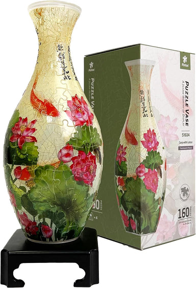 Unique Flower Vase - Made by 160-piece 3d curved puzzle pieces with a detachable water cup and stand. The finished size is 4.4 inches in diameter...