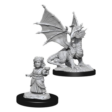 Dragon Silver Wyrmling & Female Halfling - D&D Nolzurs Marvelous Unpainted Minis
