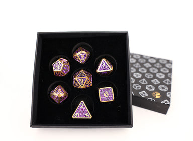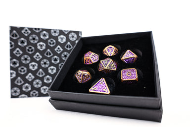 7-Die Metal Dice Set includes one of each D4, D6, D8, D10 0-10, D10 00-90, D12, D20.