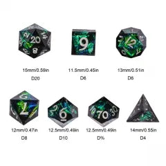 Our handcrafted dice are hand polished to keep their beautiful edges. These dice are infused with miniature Onion Frogs. 7-Die Dice Set includes o...