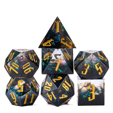 Our handcrafted, sharp edge resin dice are hand polished to keep their beautiful sharp edges. These dice are infused with beautiful glitter flakes....