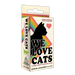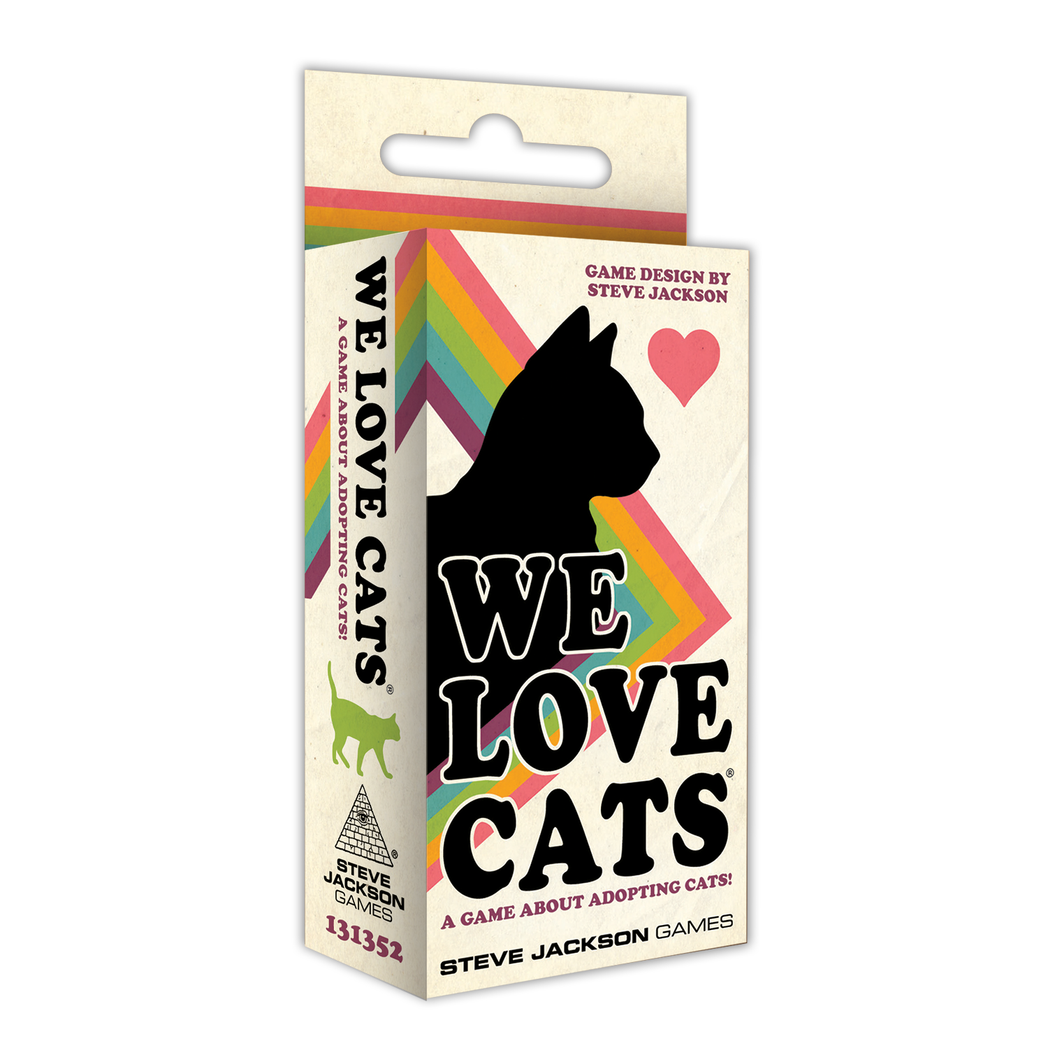 A cloth bag, 30 cat tokens, two custom dice, and rules for adopting cats!