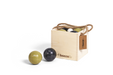 his set of bocce comes in a beautiful wooden carry crate with reinforced finger jointed corners and laser engraved artwork.