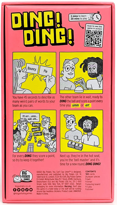 The only problem is: you can’t say “umm”. Every time you do, the bell will sound, adding to the pressure! As each team gets closer to the end, more and more sounds become off limit, making it a frantic dash to the finish line.