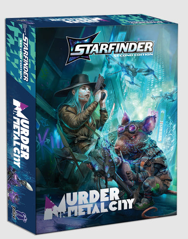 Murder in Metal City is a deluxe introductory boxed set adventure for four 1st-level Starfinder Second Edition characters containing numerous tools...