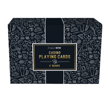 Two 54 piece quality casino playing card decks, with cards featuring contrasting Mad Men inspired designs. Hours of fun and entertainment playing with 3.5 x 2.4 inch playing cards. After play, the cards can be packed away in the storage tray and box for next time.
