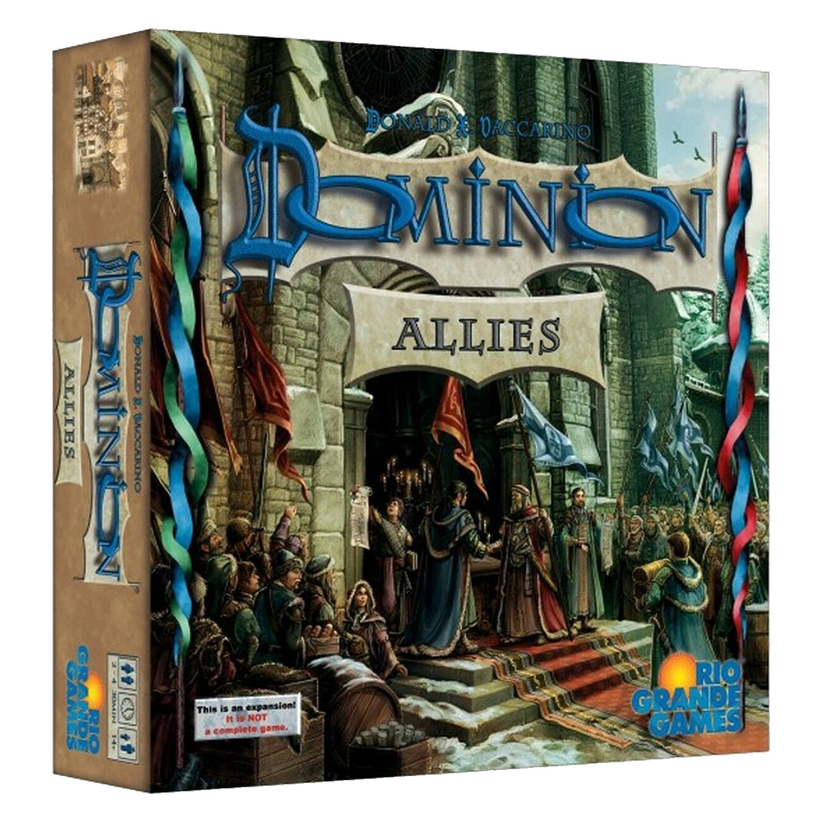 Dominion: Allies, the 14th expansion in the Dominion series, contains 400 cards, with 31 new Kingdom card piles that contain allies who will do favors for you and split piles that you can rotate.