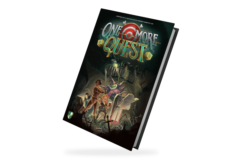 Designed for both casual and experienced players, One More Quest is a hilarious roleplaying game where the success or failure of your actions is determined by throwing dice at a Target board, trying to get as close to the center as possible, while performing whimsical throw restrictions emulating the challenge that your character is trying to overcome.