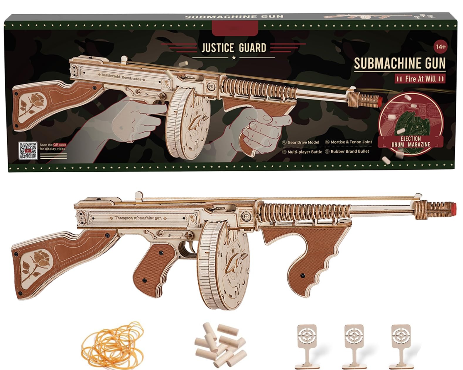 Slot wood together and load up your rubberbands ready to fire!