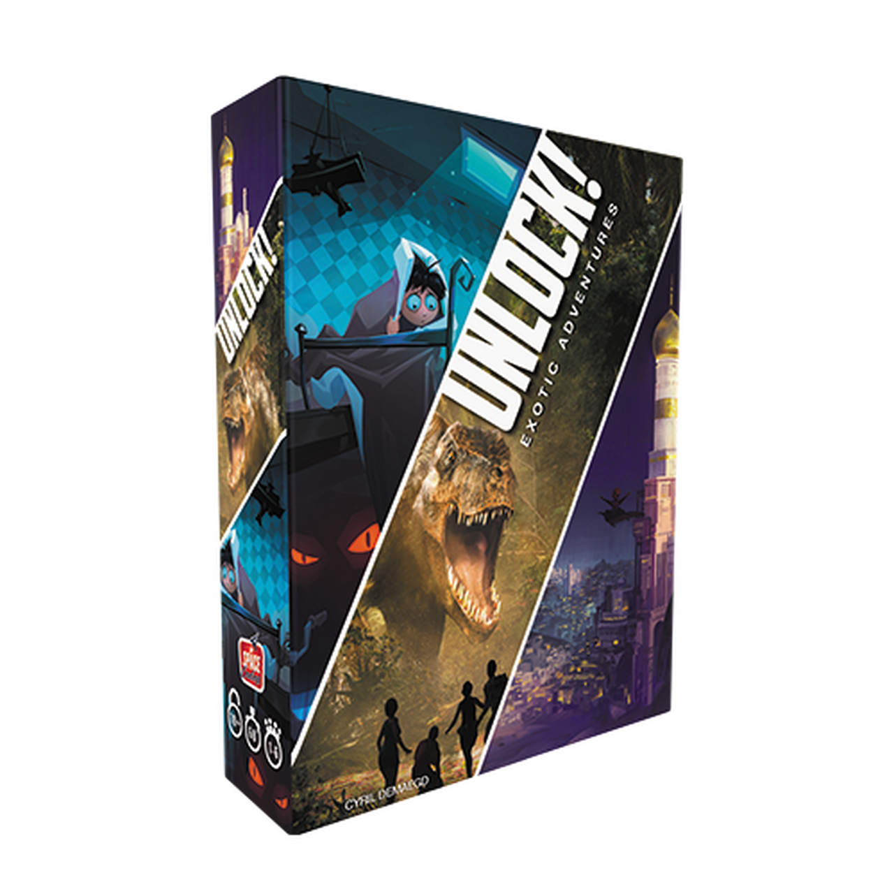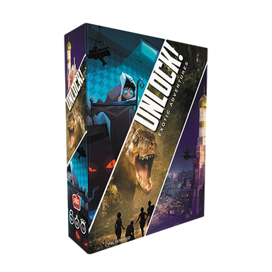 Unlock! is a cooperative card game inspired by escape rooms that uses a simple system which allows you to search scenes, combine objects, and solve riddles. Play Unlock! to embark on great adventures, while seated at a table using only cards and a companion app that can provide clues, check codes, monitor time remaining, etc. The three scenarios are: