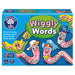 A brain-teasing, domino-style word game for the whole family! Wiggly Words is a brain-teasing domino-style word game for the whole family that makes spelling practise fun! Players take turns to add to the wiggly domino line by building a new word.